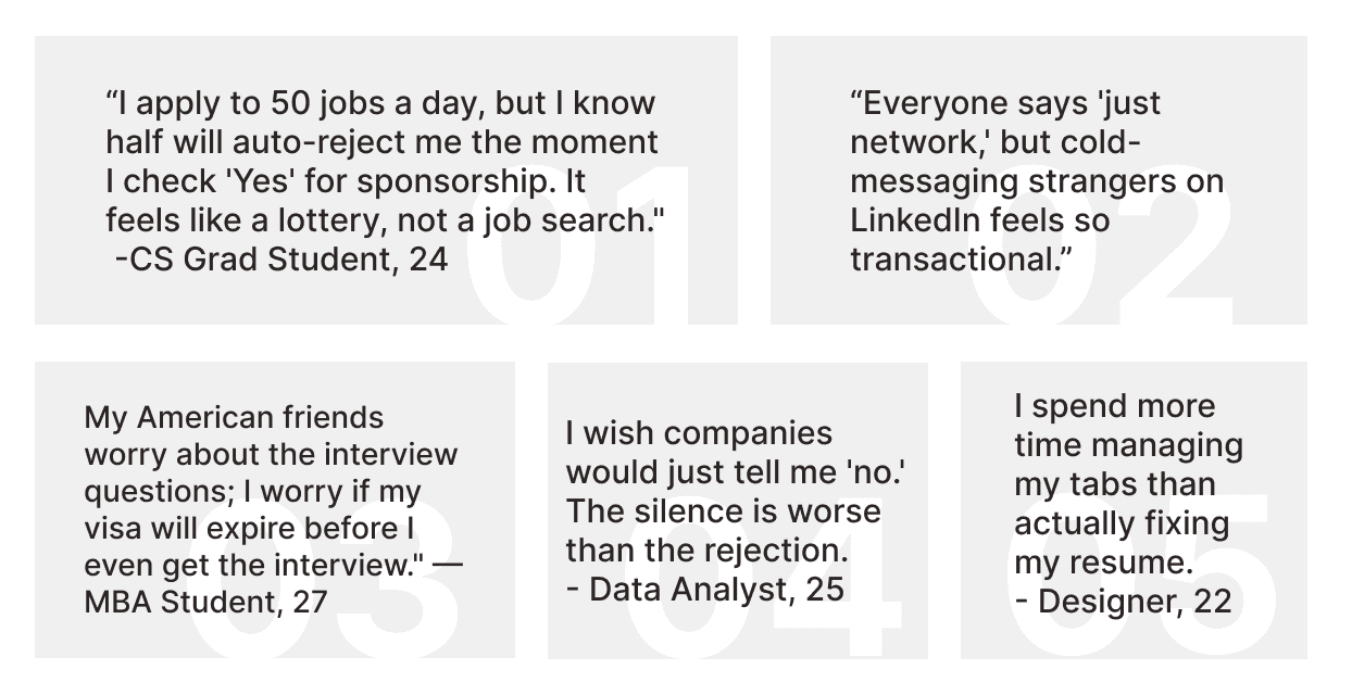 As an international student, I meet most people I encounter on a day-to-day basis, including fellow international students, job seekers, and individuals living with visa restrictions. Our main challenge these days is finding a job and establishing a sense of community belonging. The problem is not just getting a job, but living with a fear of not knowing when we'll be laid off.