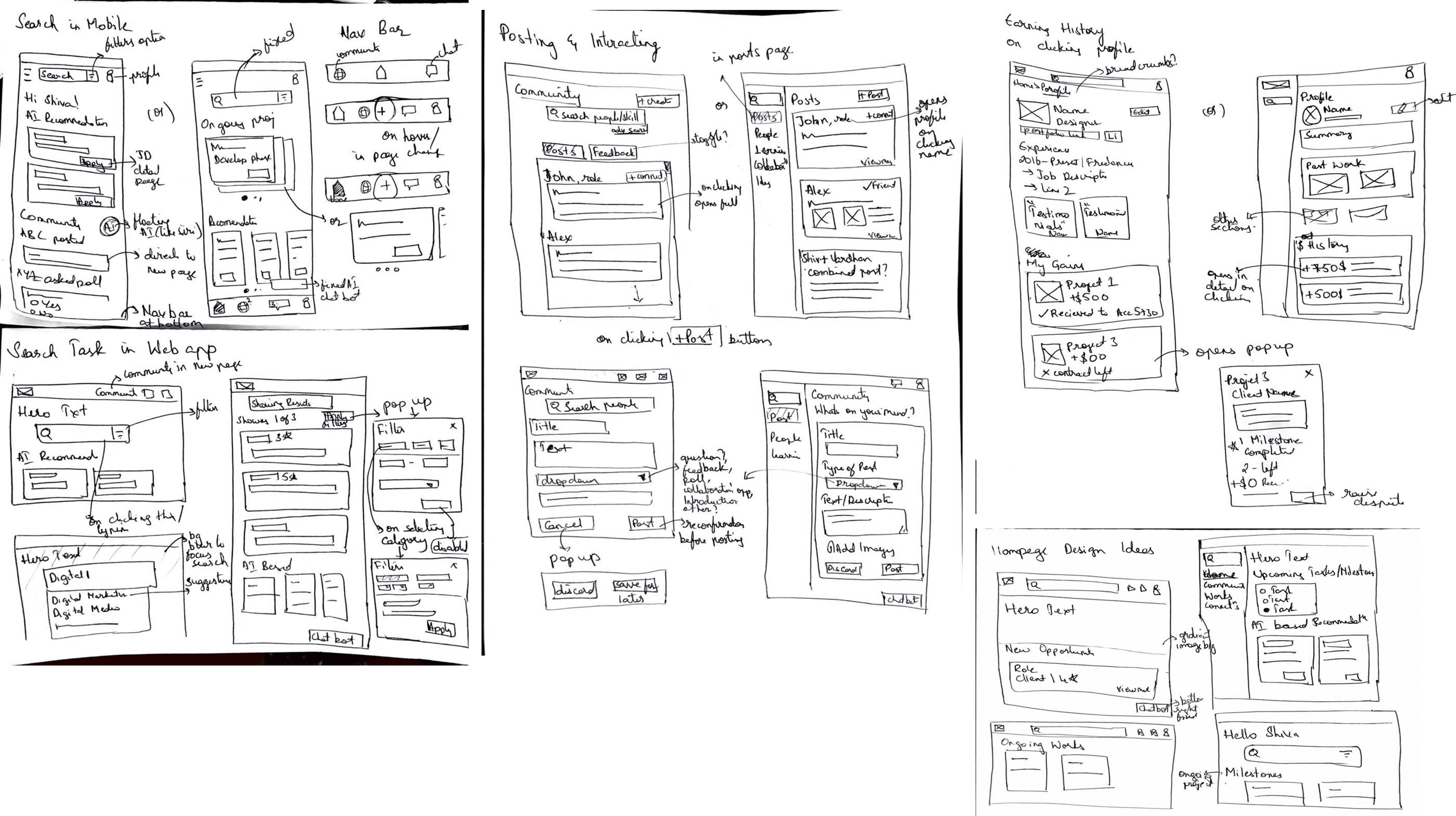 Here are a few initial sketches I brainstormed to design the features for the web app